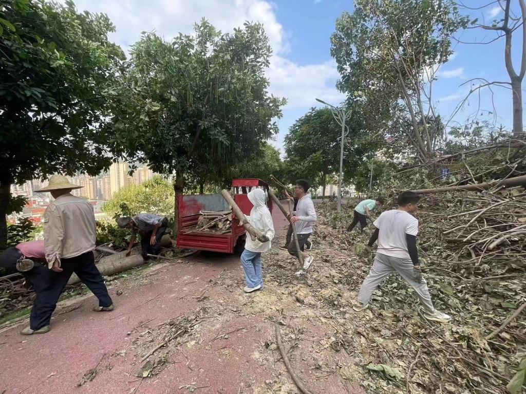 活动现场,福建林业职业技术学院校友分组携带油锯进行清障抢险工作。或处置倒伏树木,或修剪断枝……他们用专业技能助力畅通城市道路。