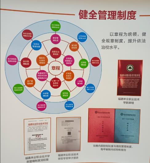 学院坚持全面完善规章制度建设,形成以章程为核心的学院规章制度体系。一是科学设定制度体系分层分类架构,根据制度的地位、性质、重要性程度等,将学校规章制度从纵向分为四个层级,包括学校基本制度、学校重要制度、学校具体制度和各部门、单位印发的制度,确保各项工作有法可依、有章可循。二是坚持立、改、废、释并举,开展规章制度自查自纠,编制《福建林业职业技术学院管理制度精细化标准汇编》,定期梳理学院拟新制定、修订、继续保留、废止的制度清单,健全制度清理长效机制。三是及时在学院网站公开发布相关规章制度,为便于师生查询和利用学院制度,完成《福建林业职业技术学院制度汇编》,做好实时更新维护,推动校内规范性文件管理信息化和公开化。