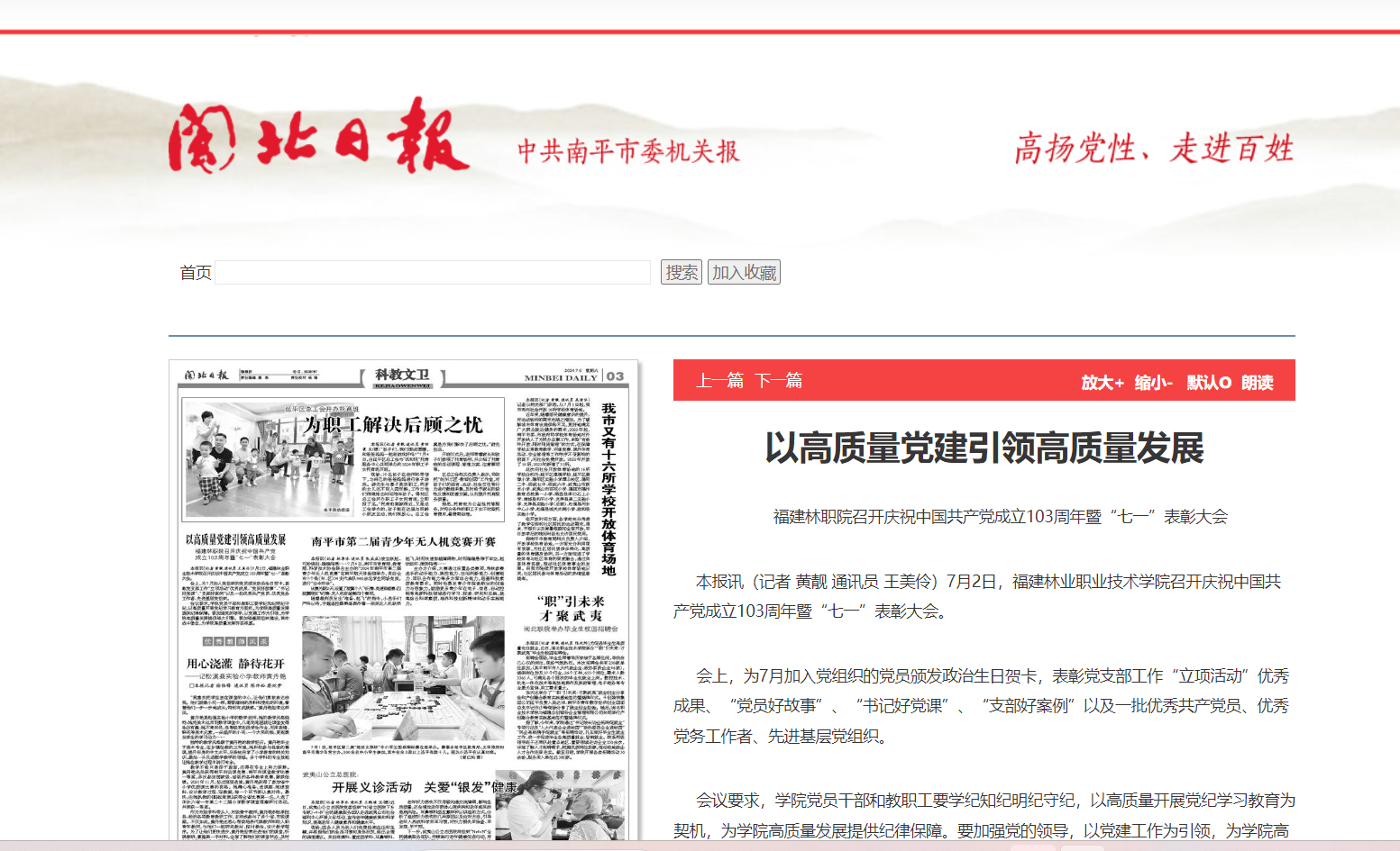 以高质量党建引领高质量发展 福建林职院召开庆祝中国共产党成立103周年暨“七一”表彰大会