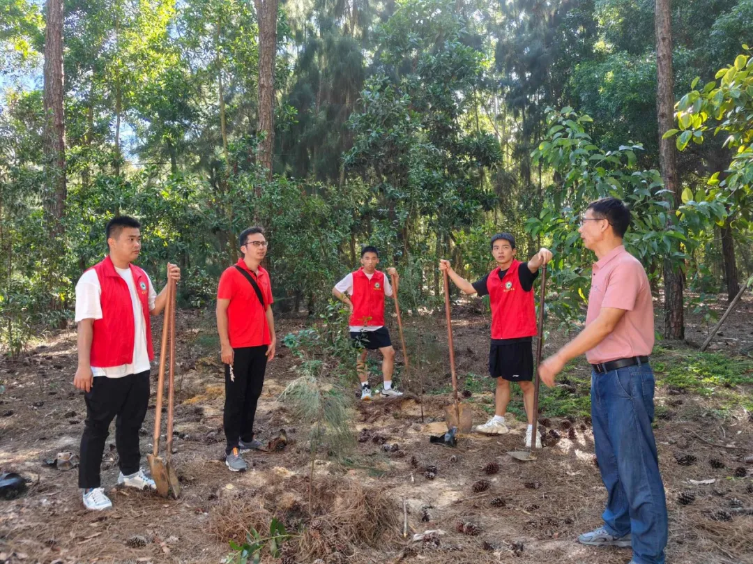 20世纪50年代,谷文昌同志带领东山县干部群众通过十几年的努力,在沿海建成了一道惠及子孙后代的防护林,在老百姓心中树起了一座不朽的丰碑,留下了宝贵的精神财富。为深入贯彻落实习近平生态文明思想的重要举措,践行弘扬谷文昌精神,深刻领悟谷文昌植树精神和背后感人故事,"长青"实践小分队来到东山县赤山国有林场,在赤山国有林场工作人员指导下,一起挥锹铲土、扶树填坑、踏土夯苗、提桶浇水,大家干劲十足、分工协作、配合默契,认真细致地完成每一道工序,精心种下一棵棵木麻黄树苗,用双手感受谷书记当年带领东山人民绿化全岛的艰辛,用实际行动践行谷文昌精神。