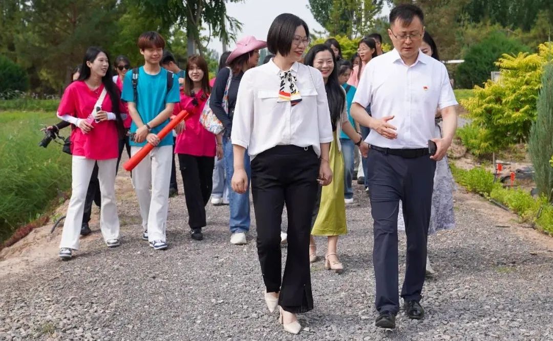 专业领航助力,厚植绿色底色。实践团队走进宁葡酒职院优新苗木引种驯化实训基地、枸杞标准化种植示范园、生态产业研究展示中心等校企合作实训基地,在老师的指导下,了解荒漠化治理、节水灌溉、水肥一体化等设施设备,成员们辨认各类植物、探讨南北方特色苗木和园林植物的差异,通过专业交流,立志为生态文明建设添砖加瓦,共同守护青山绿水。