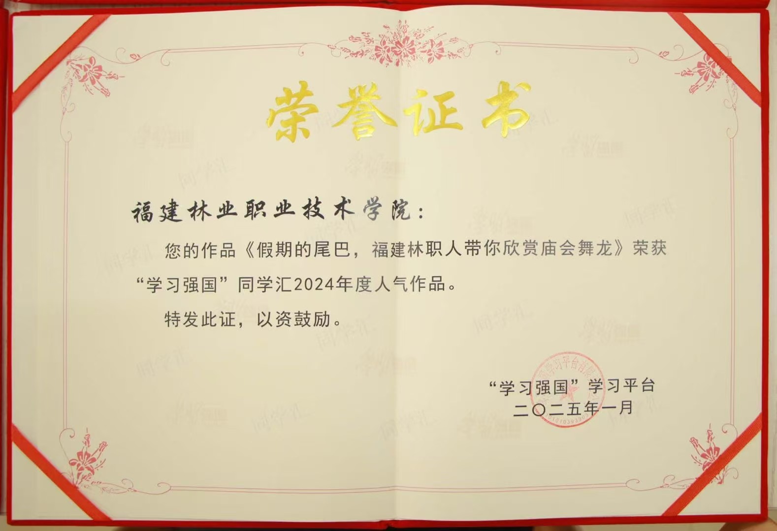 福建林业职业技术学院荣获“学习强国”同学汇2024年度多个奖项