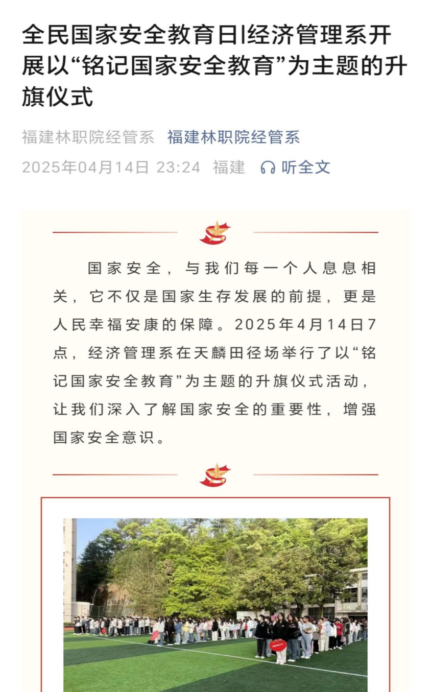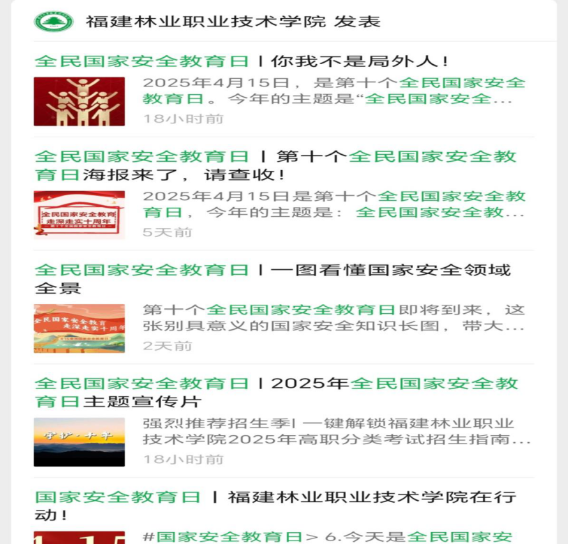▲学院官微推送全民国家安全教育日系列宣传文章
