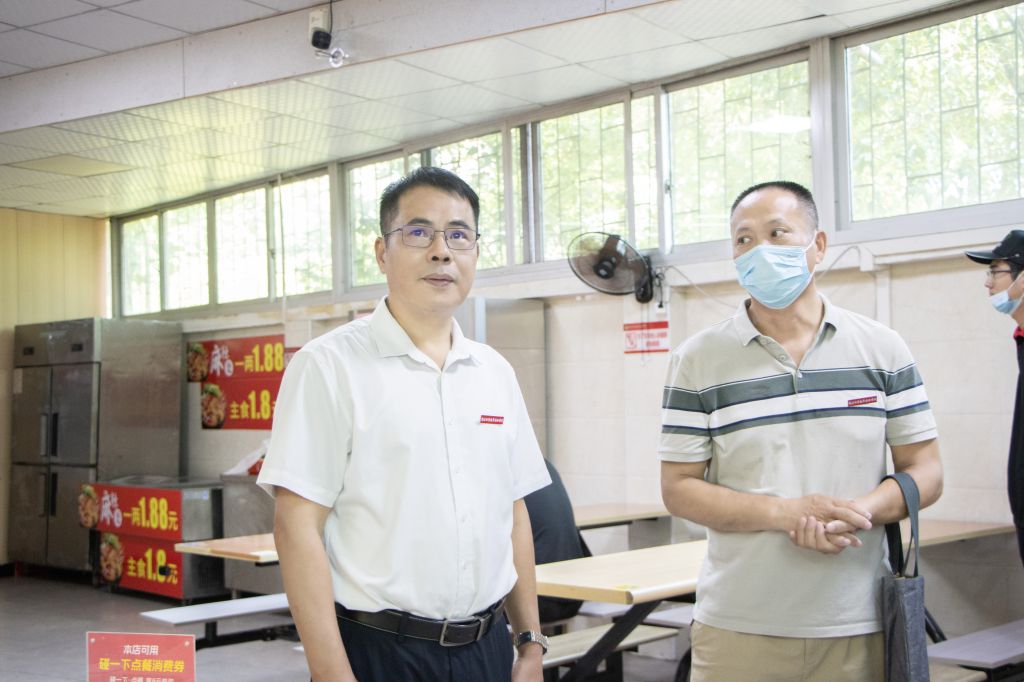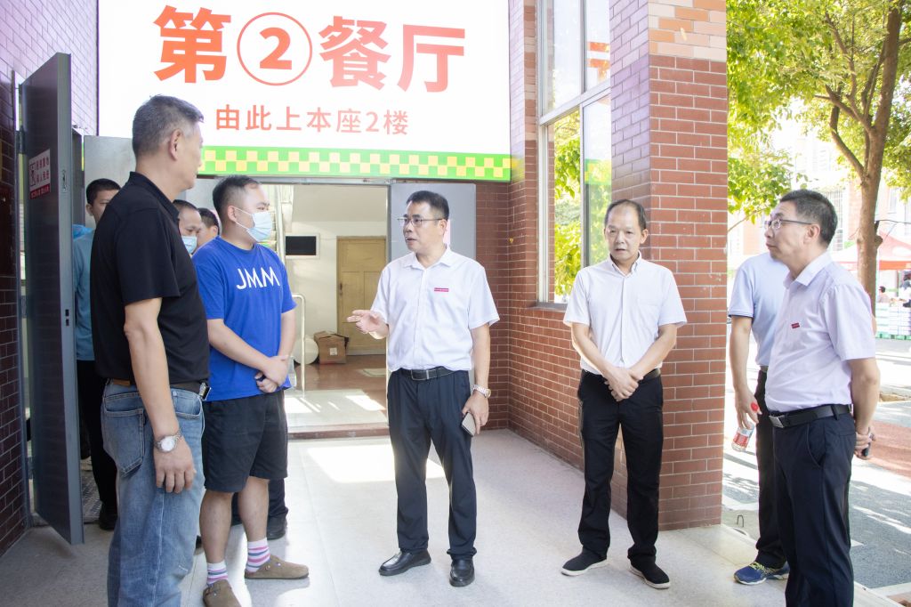 陈建辉书记一行先后走访了两个校区食堂、学生公寓、迎新报到点等核心区域,对住宿条件、餐饮安排及食品安全管理、消防安全保障、生活服务设施建设等情况进行全面细致的检查,并与相关负责人现场交流迎新准备工作细节。