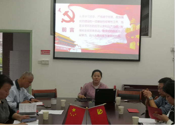 组织部(统战部)李霞带领全体党员专题学习《中国共产党章程》。李霞部长强调,认真学习党章、严格遵守党章,是每一名党员的应尽义务和庄严责任,每一名党员要常态化学习《中国共产党章程》。