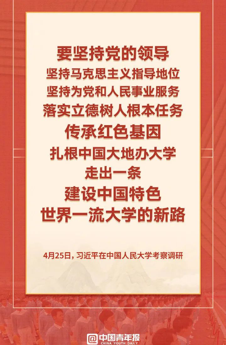 习近平总书记曾说过,“每年的五四前后,这个时间我是留给青年人的,到年轻人中间和青年学生相处,到学校看。”在今年五四即将到来之际,他如约而至,来到了中国人民大学的校园。在全面建设现代化主义国家新征程中,当代青年人要勇当开路先锋,争当事业闯将。作为一名青年学生,我要坚定不移的听党话、跟党走、努力成长为堪当民族复兴大任的时代新人。在日常的学习中,加强对思政课专业课的学习,用心倾听、领悟教学,与老师共同交流心灵,夯实自己的专业基础,用脚步丈量祖国大地,用眼睛发现中国精神,用耳朵倾听人民呼声,用内心感应时代脉搏,将与祖国血浓于水的人民同呼吸、共命运的情感贯穿血液全过程,融汇在事业生涯中,扎根中国大地,为祖国的建设奉献自己的全部。