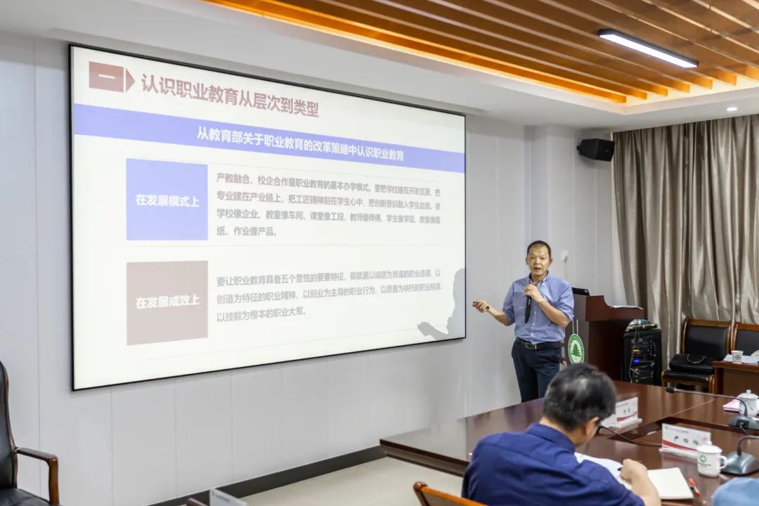 刘文开院长指出,要从层次到类型认识职业教育、充分发挥思想政治理论课铸魂育人作用、课程思政与思政课程同向同行、坚持不懈用习近平新时代中国特色社会主义思想凝心铸魂。一要推进习近平新时代中国特色社会主义思想进教材进课堂进头脑;二要教育引导学生培育和践行社会主义核心价值观;三要加强中华优秀传统文化教育;四要深化职业理想和职业道德教育。刘文开院长整个辅导报告系统全面、条理清晰、分析透彻、内涵丰富,既有政策理论高度,又紧密结合实际,对全面理解、准确把握习近平新时代中国特色社会主义思想,推动具体工作实践,用习近平新时代中国特色社会主义思想凝心铸魂,具有很强的指导、引领、助推作用。