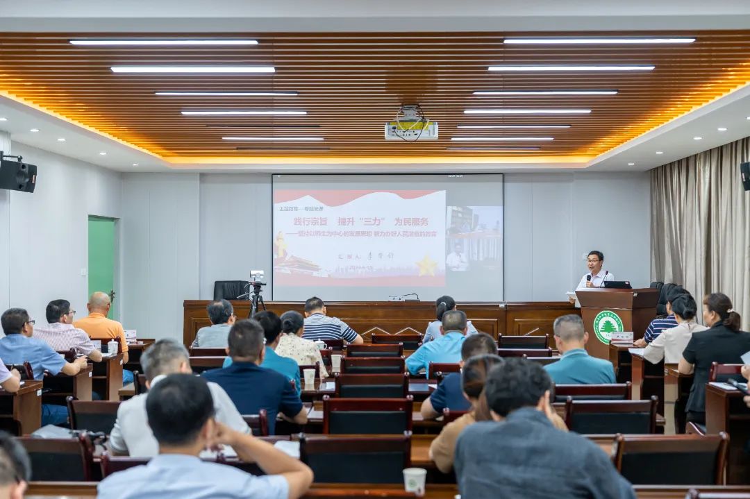 会上,李肇锋副院长作题为“践行宗旨 提升‘三力’ 为民服务——坚持以师生为中心的发展思想 努力办好人民满意的教育”专题辅导报告。他指出办好人民满意的教育是中国共产党的价值追求,“办好人民满意的教育”是以习近平同志为核心的党中央坚持人民至上的执政理念在教育领域的集中体现。随后李副院长从在以学增智中提升政治能力践行宗旨,在调查研究、发现问题、解决问题中提升思维能力,在干事创业中提升实践能力三个方面详细阐述如何提升“三力”为民服务,办好人民满意的教育的路径,为下一阶段学院高质量发展指明了道路。