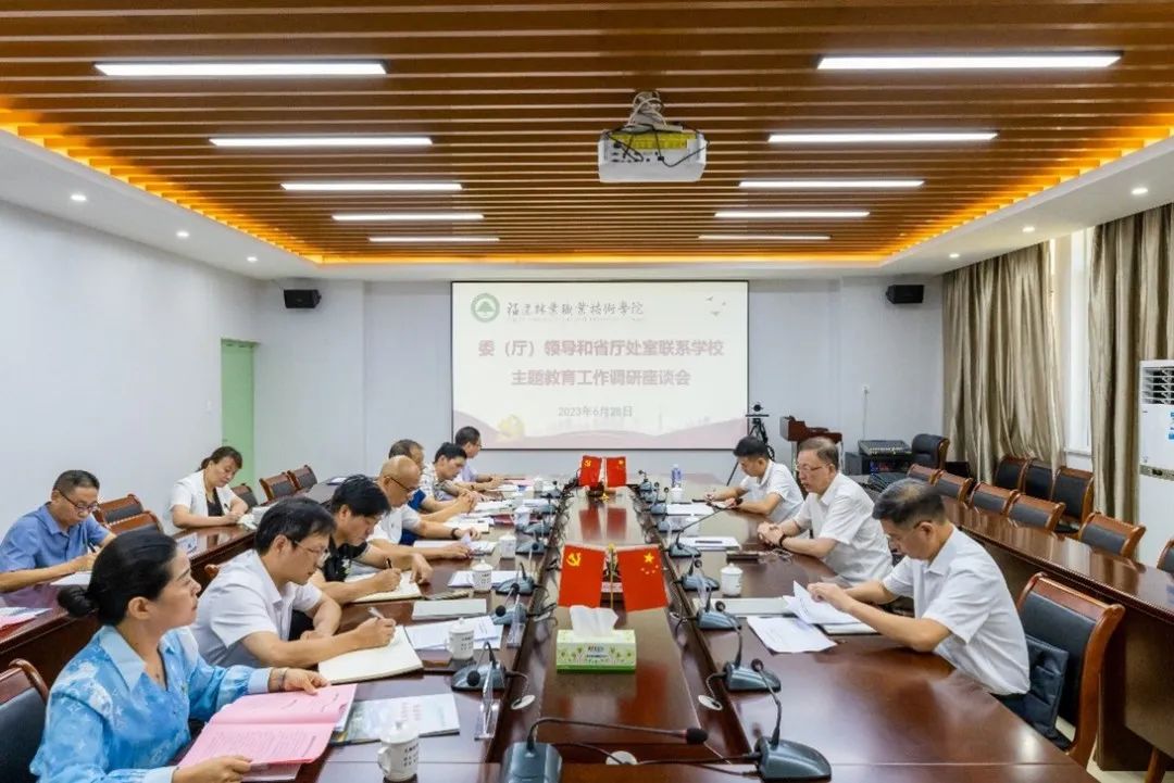 本网讯6月28日,省委教育工委委员,省教育厅党组成员、副厅长(正厅长级)刘健带领省教育厅离退休干部工作处处长张剑峰、省教育厅高教处三级主任科员滕天霖一行莅临我院调研指导学习贯彻习近平新时代中国特色社会主义思想主题教育工作推进情况。我院党政领导班子成员以及相关职能部门负责人参加调研座谈会。院党委书记万泉主持调研座谈会。