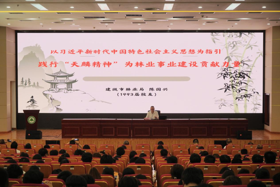 本网讯为进一步贯彻落实党的二十大精神,推动开展学习贯彻习近平新时代中国特色社会主义思想主题教育,大力弘扬新时代劳模精神,用新时代劳模精神感染和滋养校园文明,6月29日下午,学院特邀省人大代表、省劳模、我校优秀校友、建瓯市林长服务中心主任陈国兴走进学院“天麟大讲堂”,为师生讲述践行“天麟精神”为林业事业建设贡献力量,深化师生对习近平生态文明思想的理解和认识。