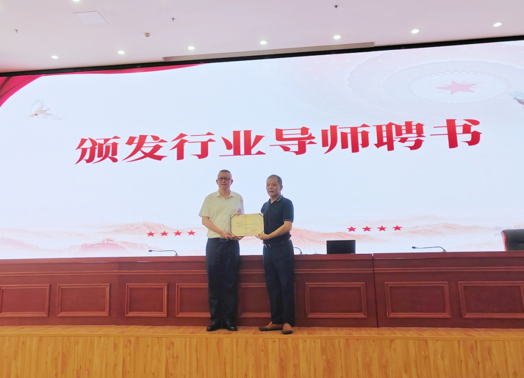 会前,学院党委副书记、院长刘文开为福建省人大代表、省劳模陈国兴颁发学院行业导师聘书。