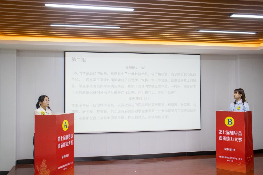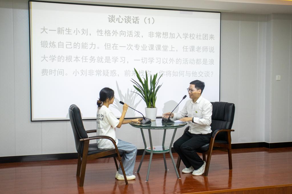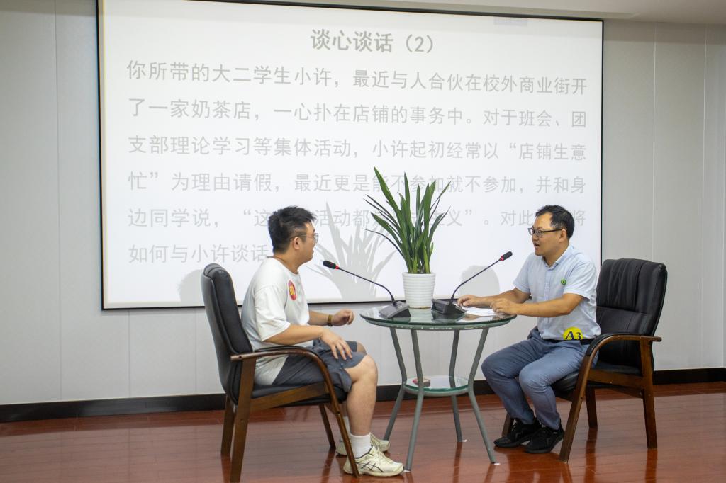 本网讯为推动学习贯彻习近平新时代中国特色社会主义思想主题教育走深走实,提升我院辅导员素质能力水平和学生思想政治教育质量,我院于6月下旬至7月上旬举办了第七届辅导员素质能力大赛。本次大赛分为基础知识测试、案例研讨和谈心谈话三个环节。学院全体专职辅导员参加基础知识测试,排名前十的选手进入案例研讨和谈心谈话现场比赛环节。