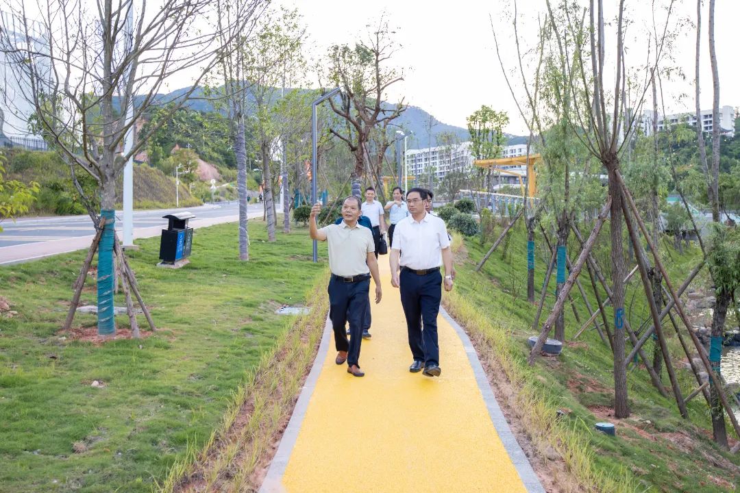 林生一行还实地考察调研了学院全国党建工作标杆院系展览馆、江南体育馆和景观水系工程等地。他表示,学院依山而建、傍水而居,校园环境优美、文体设施齐全,是宜居宜住的山水校园。