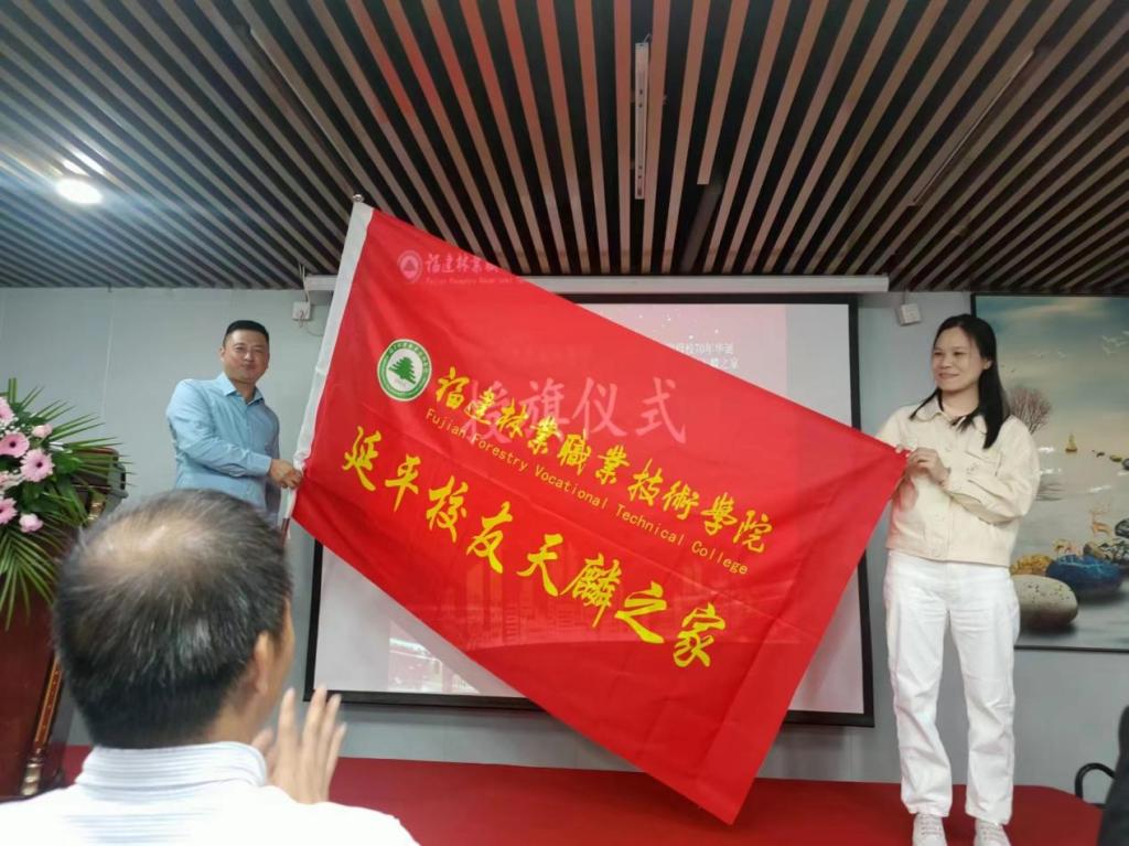 学院党委委员、宣传部部长邹小燕为延平校友天麟之家授旗
