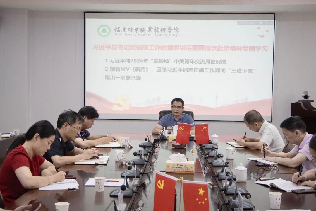会议开展习近平总书记对福建工作的重要讲话重要指示批示精神专题学习。陈建辉领学了习近平总书记向2024年“鼓岭缘”中美青年交流周致贺信精神,与会人员观看MV《新路》,回顾习近平同志在闽工作期间“三进下党”蹚出一条振兴路。