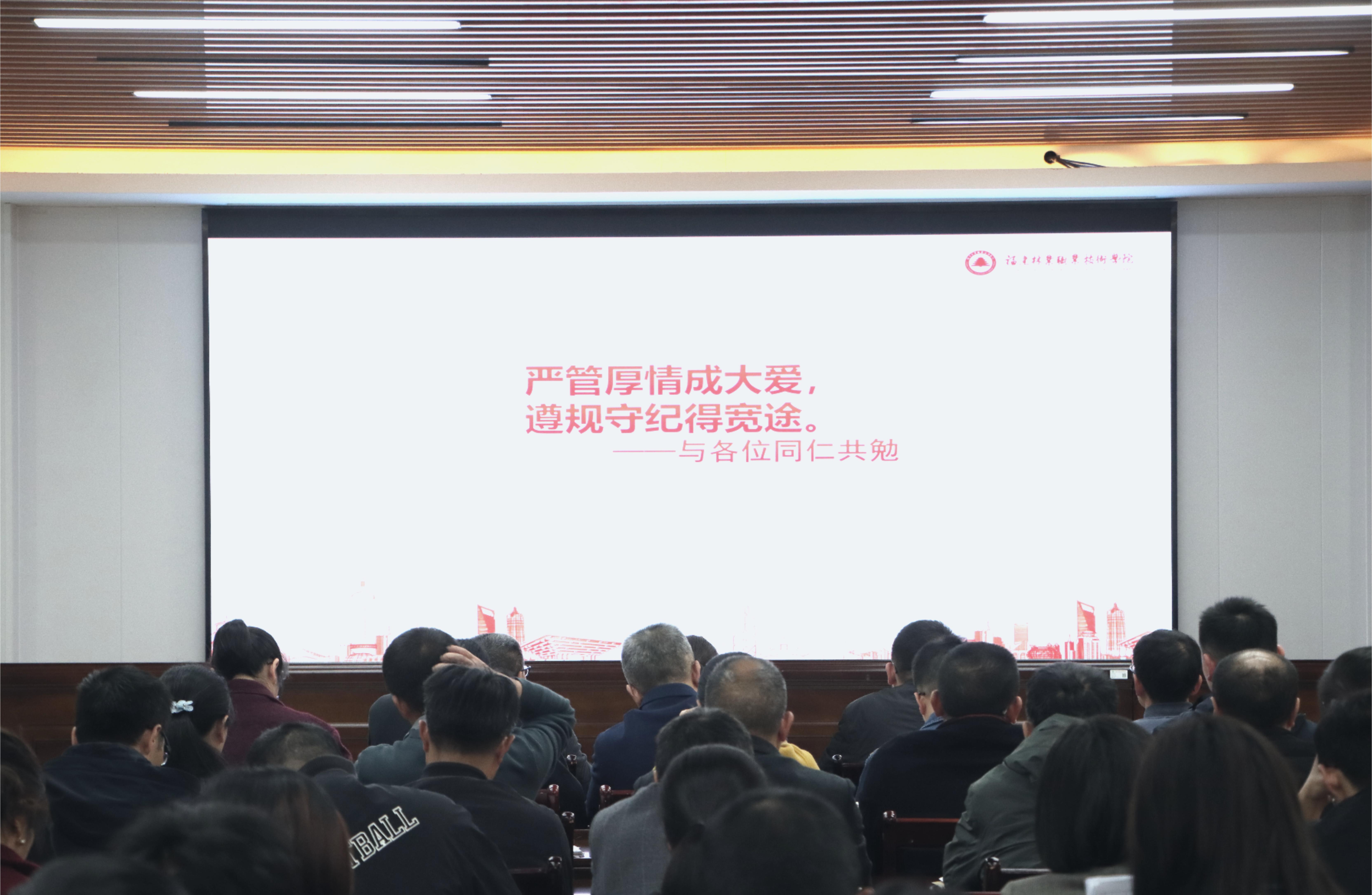 本网讯 12月9日下午,学院党委委员、纪委书记詹其仙为学院全体干部作“《中国共产党纪律处分条例(2023)》——党员的新戒尺”专题讲座。讲座由院党委委员、组织部(统战部)部长李霞主持。