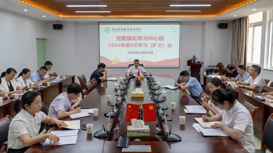 本网讯 5月30日下午,院党委书记陈建辉在江南校区行政楼五楼会议室主持召开2024年第5次党委理论学习中心组学习(扩大)会,传达学习习近平总书记近期重要讲话重要指示批示精神并提出贯彻意见,开展教育专题学习和党纪学习教育,围绕学习《中国共产党纪律处分条例》开展专题学习研讨。院党委理论学习中心组成员参加学习。