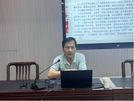 本网讯 为深化作风建设,筑牢思想根基,2025年5月29日,学院副院长黄晖以《深入开展学习教育,持续加强作风建设》为题为经济管理系和继续教育学院全体教师党员讲授深入贯彻中央八项规定精神学习教育专题党课。党课由经济管理系党总支书记陈剑勇主持。经济管理系、继续教育学院全体教师党员和经济管理系党务干部参加学习。