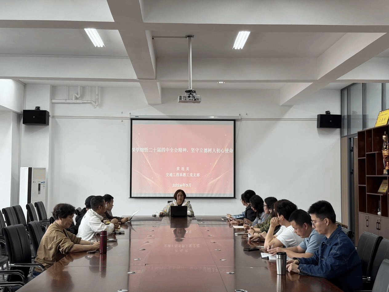 本网讯 为深入学习贯彻党的二十届四中全会精神,切实将思想和行动统一到党中央的决策部署上来,交通工程系教工党支部于3月24日下午在系会议室组织开展“深学细悟党的二十届四中全会精神,坚守立德树人初心使命”专题党课。本次党课由支部书记黄连英同志主讲,支部全体党员参加学习并进行了深入交流。