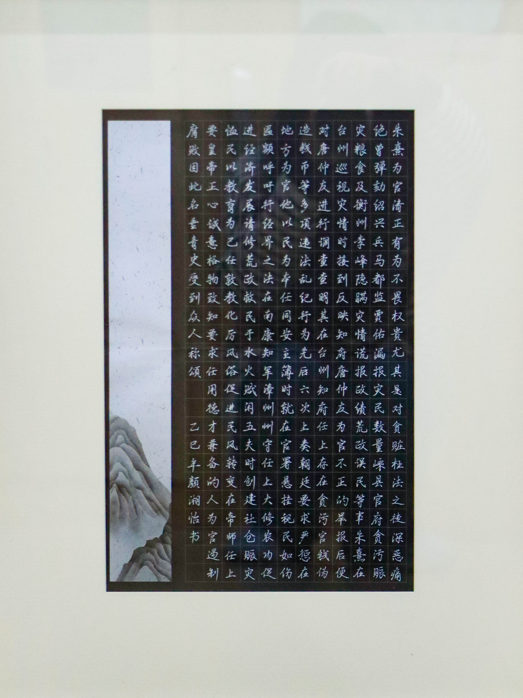 此次入选作品涵盖创意类与绘画类两大类别,创意类作品5件,绘画类作品1件。书法作品有詹其仙老师的《乙巳咏海瑞》、林智涵老师的《增强党性,重在坚定理想信念》;硬笔书法作品有颜湘怡同学的《朱熹:浙东赈灾斗贪官》、罗瑞粮同学的《严明军法难容奸》;创意类作品有彭锦水、陈蕾羽老师创作的海报《慎独清廉守护好精神的阁楼》和黄春梅老师的画作《不染尘》。