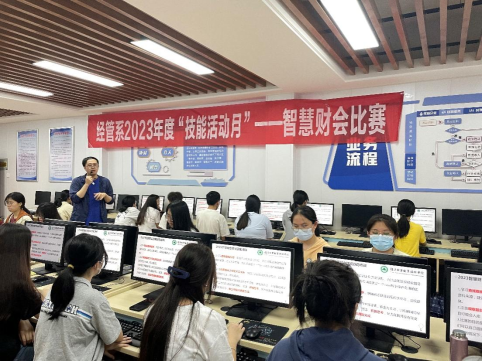 为了强化学生的实操技能,全面提高财经类专业学生的动手能力、自主学习能力和职业素养,对标学院技能活动月实施目标,2023年5月17日,经济管理系开展了智慧财会赛项赛前技能培训活动,此次培训活动共有约51名来自于2021、2022级大数据与财务管理、大数据与会计以及会计信息管理专业入围初赛的学生参加。此次赛项报名人数众多,约有150人,因此,在比赛培训前的 5月11日和5月15日已经分别开展了赛项初步指导和初赛入围选拔测试。赛项的培训、指导与人员选拔由刘婷老师、陈家伟老师全程负责与监督。