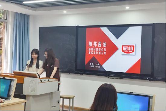 在活动中,学生们轮流上台汇报自己准备的PPT,每个学生有10分钟的时间展示和阐述自己的创意和商业模式。赛事负责人施莹莹老师和王煌慧老师对参赛选手进行了培训指导与监督。