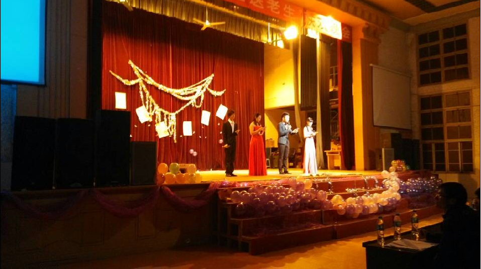 晚会在开场舞《说出愿望吧》的动感音乐中拉开了序幕,优美而华丽的舞姿让台下同学欢呼雀跃,掌声不断。随后节目更是个个精彩纷呈,高潮迭起。优雅的古筝独奏《渔舟唱晚》把我们带到了温暖的渔家庭院。更有那小品《大偷集团》和劲舞《凳子舞》把晚会推向了高潮。其间的颁奖和抽奖环节也让整场气氛不断升温。话剧《化蝶》的演员们充分发挥了她们的幽默天赋,将晚会再次推向了高潮。晚会歌声不断,舞步不止,掌声不休。