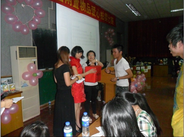 6月5日晚7点30分,由经管系团总支主办,社团部承办,经管系市销协会协办的“第一届爱心拍卖比赛”在第一多媒体举行。系主任党总支副书记张毅老师、系团总支书记罗志斌老师、陈静老师、赵诗羽老师出席观看,经管系学生到场观看。本次拍卖比赛以爱心为载体,使大学生在参加比赛的同时,也增强他们踊跃参与社会公益活动的爱心奉献意识。