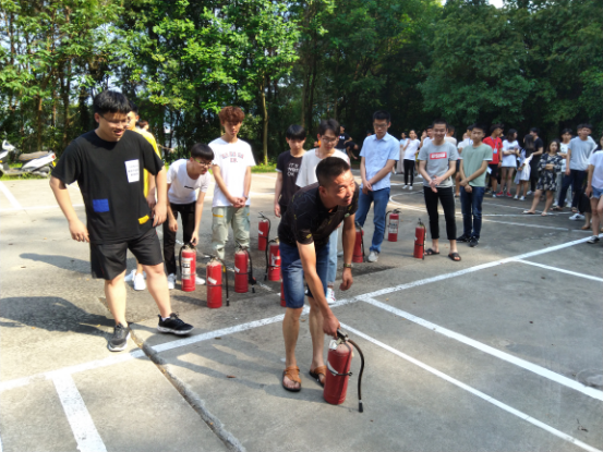15日下午3点整,我系学生会干事在每栋宿舍楼下吹哨,大一大二全体学生从各自宿舍井然有序地向天麟操场疏散,全系500余名在校生在4分钟之内均从宿舍疏散到操场。待同学们集合完毕,我系谢福荣书记就本次活动进行点评并进行安全教育。疏散演练结束后,全体班长与舍长移步金工车间前,由保卫科陈宁和黄建南老师教授灭火器的使用方法并由学生代表现场训练利用安全器械灭火。
