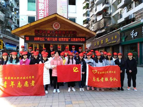 本着“服务人民,共建和谐社会”的宗旨,在社会树立奉献、有爱、互助、进步的时代新风范,2018年12月18日福建林业职业技术学院经济管理系南普陀寺慈善会勤“公”助学志愿服务队和南平市延平区剑津社区牵手开展“善心善行•不忘初心”共创文明城市活动。活动过程中,志愿服务站的书记带领志愿者们把社区平时无人打理的草丛,花圃进行整理。志愿者们用夹子夹起无法用手捡到的垃圾,男生负责倒垃圾,搬重物,女生负责扫地等,每个人都分工明确。