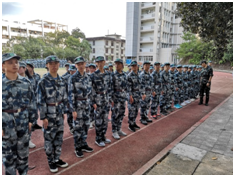 在接下来几天的军训中,高温酷暑给军训工作带来困难,有的学生病倒了,凭借着顽强的意志,稍有好转便坚持训练;有的学生带病仍在坚持训练。在学长教官亲切的关怀和严格训练下,在短短的五天里,齐步走、立正、稍息、跨立、敬礼、解散、集合等预定训练科目已初见成效。教官手把手教,大一新生认真的学,方队整齐,精神饱满,步伐矫健、口令准确、声音嘹亮,相信在最后一天的中,大一新生将会以最饱满的精神状态,给我们带来一场令人振奋的会操表演。