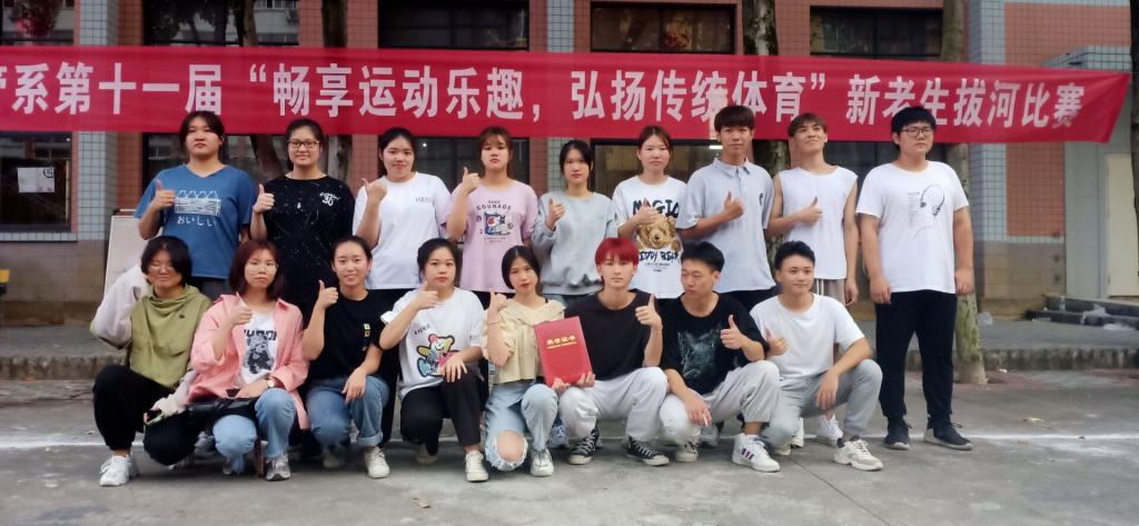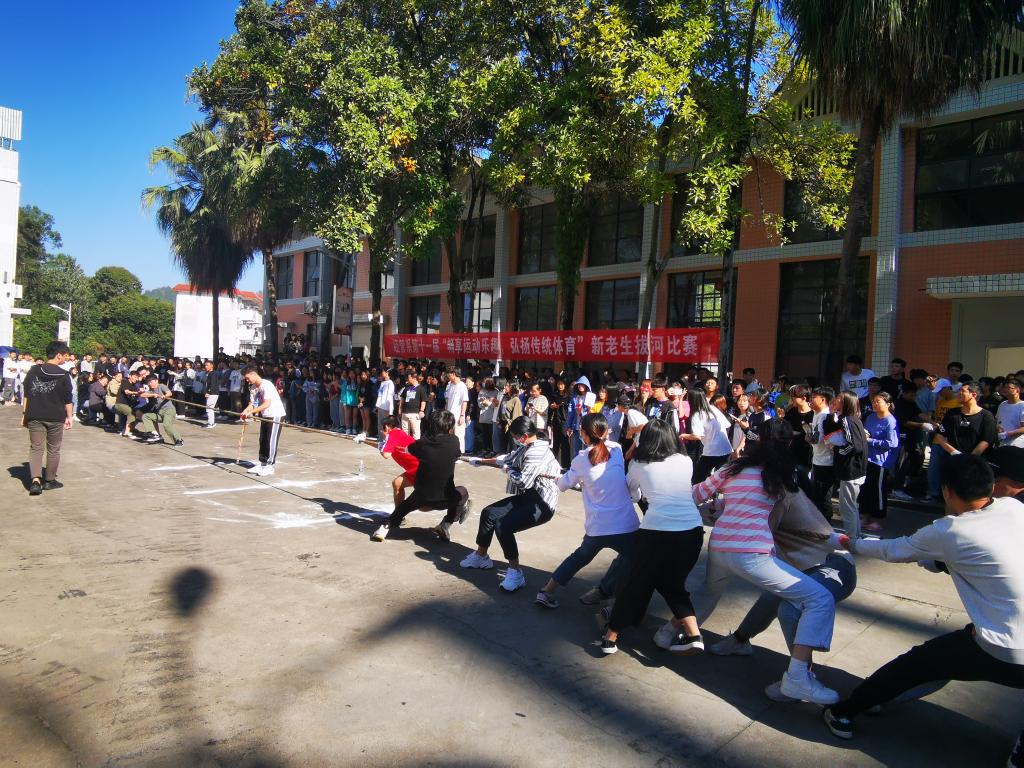 疫情在校期间,为了丰富同学们的业余文化生活,增强同学们体育锻炼的意识,形成良好的体育锻炼的习惯,提升身体的综合素质,丰富新老生的课余生活。2020年11月1号下午2:00,经济管理系在天麟校区礼堂门口开展第十一届“畅享运动乐趣,弘扬传统体育”新老生拔河比赛。