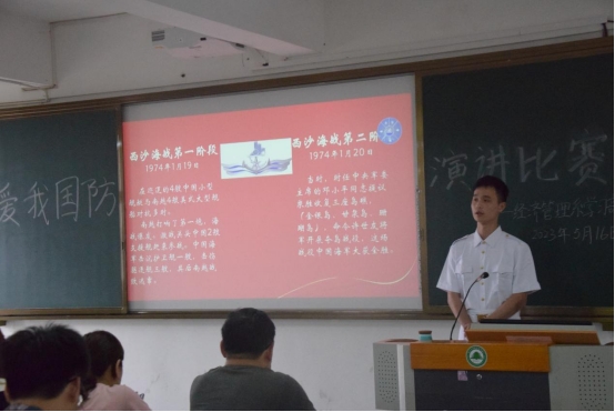 为激发大学生关心国防、热爱国防、建设国防、保卫国防的热情,增强大学生家国情怀、强国强军的责任担当,弘扬英雄先进事迹,进一步传承红色基因,发扬时代精神,5月16日下午,经济管理系在科教楼402组织开展爱我国防主题演讲比赛的复赛。此次演讲比赛,由经济管理系学生科长兼团总支书记温全军以及辅导员张中军、罗颖、彭素芸、吴静等老师担任评委。