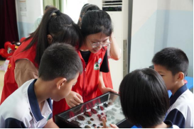 随后,由林学系志愿者为同学们展示昆虫标本,老师们和志愿者们带领学生们认识各种昆虫标本,普及昆虫知识。接着,廖士喜老师组织同学们一起与舞狮互动,教同学们舞狮,在此过程中,同学们深刻体会到了团队精神的重要性,并获得了快乐和美好的回忆。志愿者们表示看着这些孩子们的笑脸就是对本次活动最大的认可。最后,由老师们和志愿者们为同学们颁发书包。