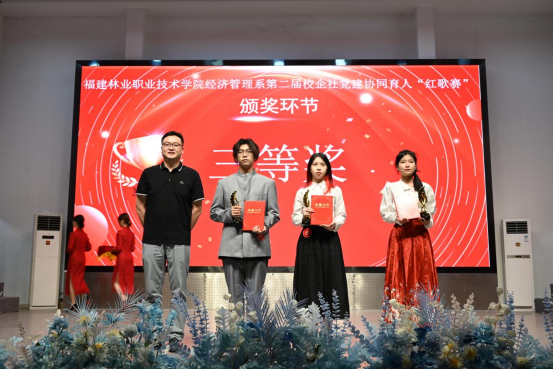 最后,经济管理系第二届校企社党建协同育人红歌赛在经管系党员代表、金山塔社区党员代表、南平司法强制隔离戒毒所党员代表和全体参赛选手的大合唱《灯火里的中国+上春山》中顺利落下帷幕。