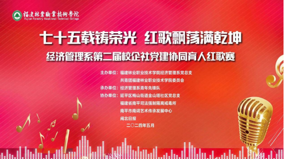 为深入学习贯彻党的二十大精神,强化党建赋能,凝聚强大合力,引导广大师生厚植家国情怀,2024年5月9日,福建林业职业技术学院经济管理系党总支、院团委、延平区梅山街道金山塔社区党总支、福建省南平司法强制隔离戒毒所、南平市南词艺术传承发展中心和闽北日报联合开展“七十五载铸荣光,红歌飘荡满乾坤”校企社党建协同育人红歌赛主题活动。学院党委副书记严绍裕、院团委副书记(主持工作)雷栩艺、院组织部统战部副部长赵诗羽、梅山街道金山塔社区党总支书记郑艳、福建省南平司法强制隔离戒毒所回归指导大队政治教导员余建清、南平司法强制隔离戒毒所监察室三级警长余津、经管系主任林文胜、经管系党总支副书记(主持工作)王昉、经管系副主任宋李玉、院学工部学生教育管理科科长温全军、各系党总支专职组织员、经管系全体党支部书记、辅导员及部分师生代表参加本次活动。