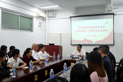 为深入学习贯彻党的二十届三中全会精神,深刻领会精神实质,准确把握核心要义,号召广大青年学子积极进取,将青春力量奉献在全面深化改革的伟大事业中,2024年11月12日下午,福建林业职业技术学院党委书记陈建辉一行深入天麟一站式学生社区,为经济管理系学生第一党支部师生宣讲党的二十届三中全会精神。