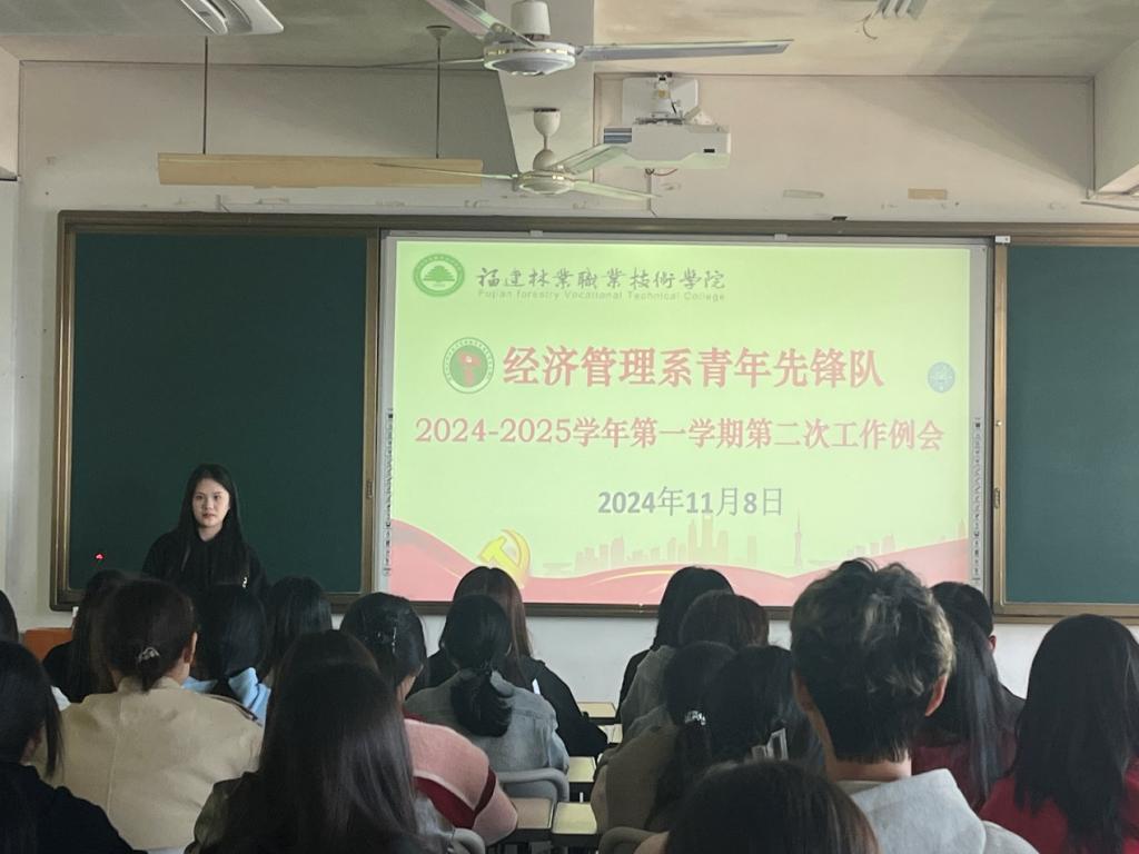 2024年11月8日星期五,经济管理系青年先锋队在科教楼602教室召开2024-2025学年第一学期第二次工作例会。经济管理系专职组织员张翼翔、青年先锋队全体学生干部和干事参加本次会议,会议由青年先锋队大队长黄敏主持。