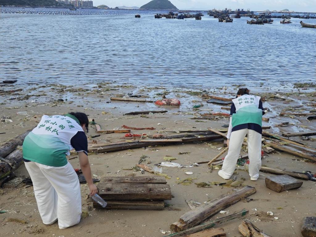 同时,在连江县同心村海岸线旁,经济管理系“林小羽”志愿团队开展清洁海岸垃圾的志愿活动,在暑期社会实践过程中展现了新时代青年志愿者的生态文明担当。本次志愿服务秉承“奉献、友爱、互助、进步”的精神,通过清理海岸垃圾维护海洋生态环境,以实际行动践行绿色发展理念。