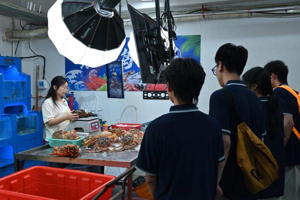 7月2日下午,经济管理系福建数字经济与海洋经济融合发展观察团前往厦门市夏商国际水产交易中心。该中心构建了多个功能平台:同学们在水产品交易平台见证了活鲜、鱼类、干货等水产品的批发、配送、拍卖、代理业务一应俱全;在冷链物流中心,了解到通过现代化智能冷库与专业资质加工车间,观摩到渔业与物流如何依托基础设施实现冻品保税、转口贸易及水产品深加工;在直播电商平台,学习到了水产行业数字化转型的创新实践模式。