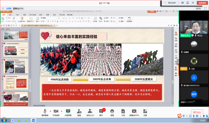 罗立仪副院长以习近平总书记在新冠病毒肺炎疫情防控期间的多次重要指示为引子,围绕中国共产党领导的政治优势、如何打好疫情防控的人民战争、总体战、阻击战及有信心有能力有把握打赢这场疫情防控阻击战等三个方面展进行讲解。通过梳理习近平总书记的指挥抗“疫”日志,中央作出的一系列重要部署,列举了1998年抗洪抢险、2003年抗击非典、2008年抗震救灾等具体事例,生动展现了党中央始终坚定不移地把人民群众的生命安全和身体健康放在第一位,彰显了中国共产党领导的中国特色社会主义制度的治理优势。