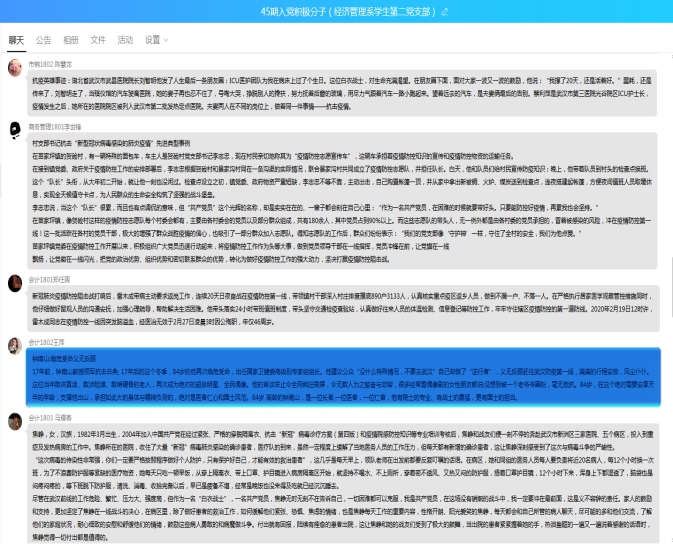 接着,支部成员中2017级、2018级部分党员通过QQ群留言方式交流分享学习心得。
