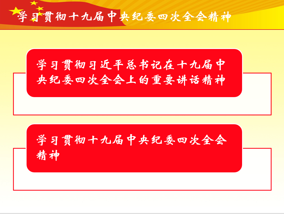 为深入学习贯彻中央纪委十九届四中全会精神,把学习成果转化为推动工作的动力,确保全会精神落实落地,2020年5月19日,经济管理系在经管楼408召开题为《学习贯彻中央纪委十九届四中全会精神》的政治学习会议。本次会议由党总支书记谢福荣主持,系主任蔡敏主讲,经济管理系全体教工党员参加。