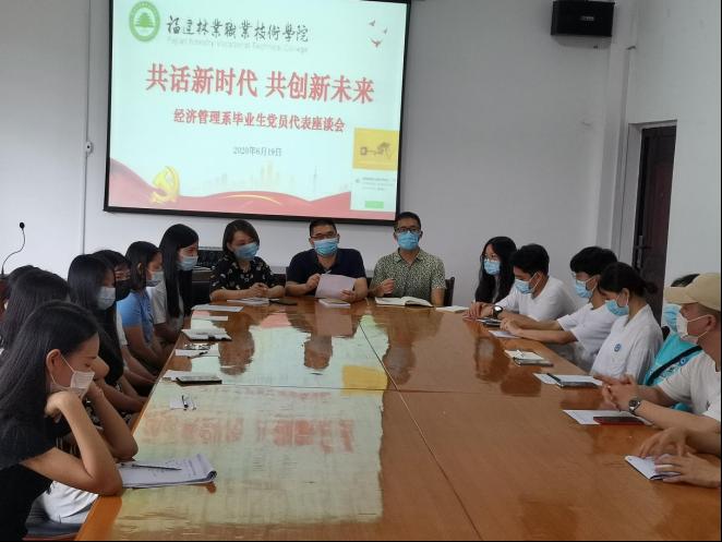 又是一年毕业季,齐聚共叙师生情。2020年6月19日下午3点经济管理系在经管楼408会议室召开以“共话新时代·共创新未来”为主题的2020届毕业生党员代表座谈会,经济管理系党总支书记谢福荣、部分专职辅导员及毕业班党员代表、预备党员代表参加了会议。本次会议由经济管理系党总支书记谢福荣主持。