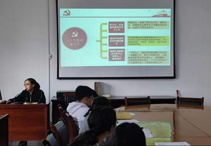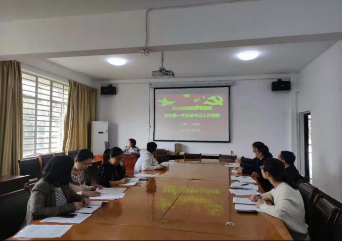 经济管理系教工党支部书记吴淑秋、学生第一党支部书记张翼翔、学生第二党支部书记胡斌分别就2020年度党支部党建履职措施、工作特色与成效、存在的不足及下一年度工作计划等三方面认真、全面地进行述职。