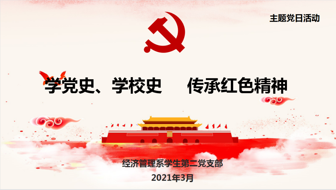 为进一步引导支部党员继承和发扬革命传统,弘扬革命精神,传承红色基因,把党史校史教育深入到支部每一位同志内心,将个人理想与祖国发展、学校发展紧密结合起来,争做担当民族复兴大任的新时代青年。为此,2021年3月30日经济管理系学生第二党支部在天麟校史馆、经管楼408会议室,开展“学党史、学校史 传承红色精神”主题党日活动。