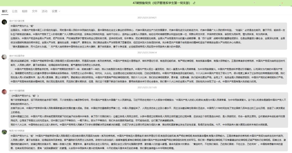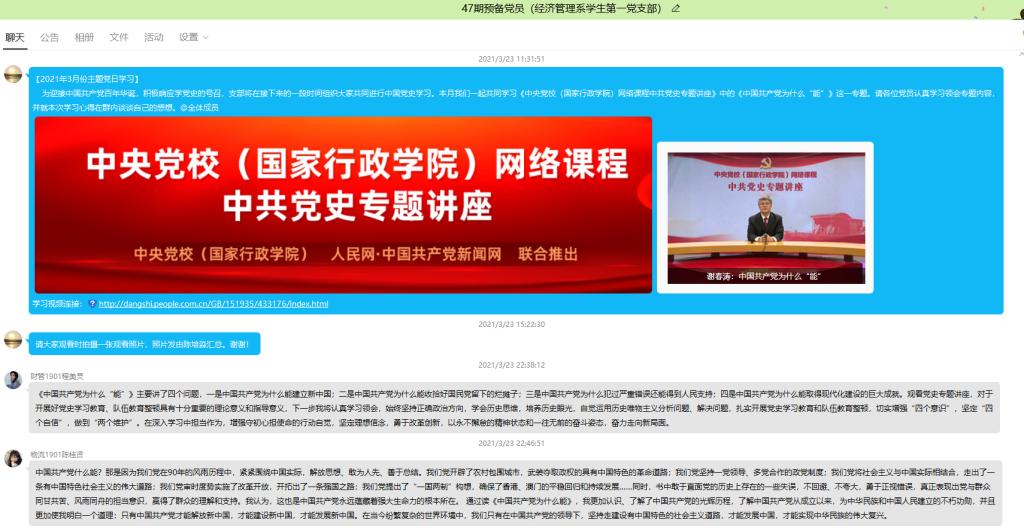 为迎接中国共产党百年华诞,积极响应学党史的号召,经济管理系学生第一党支部于2021年3月23日组织支部全体党员及预备党员线上共同学习了中央党校(国家行政学院)网络课程《中共党史专题讲座》的第一讲课程:中国共产党为什么“能”。