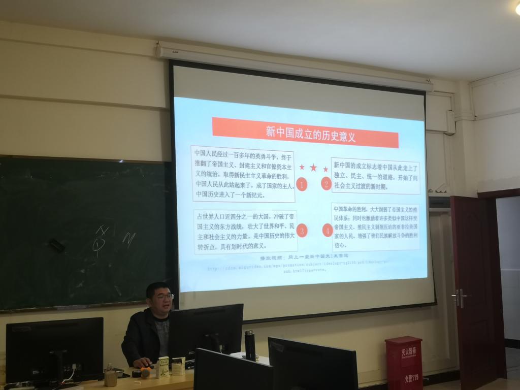 课上谢福荣书记从新中国史的基本脉络、艰难曲折中的初步探索、基本经验总结三方面,带领大家深入学习党史。