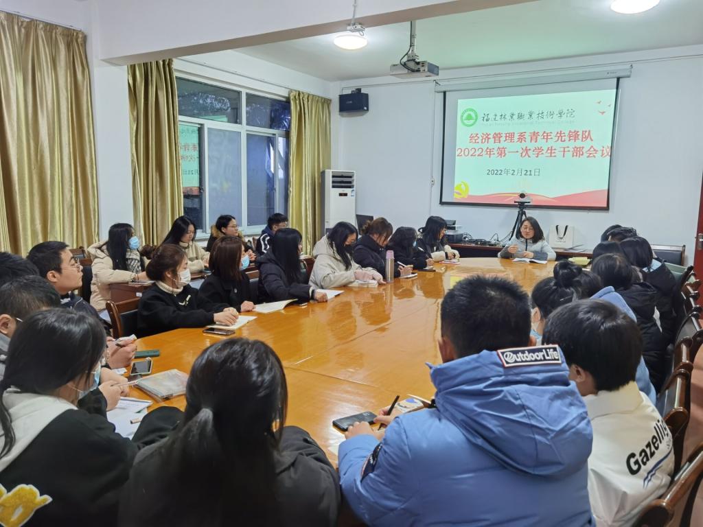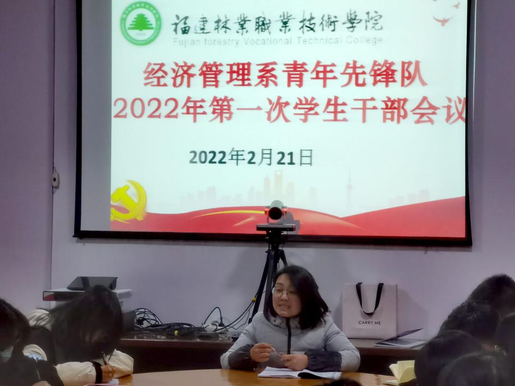 2022年2月21日晚7点,经济管理系青年先锋队于经管楼408召开了2022年第一次学生干部会议,本次会议由青年先锋队负责人张翼翔老师主持。