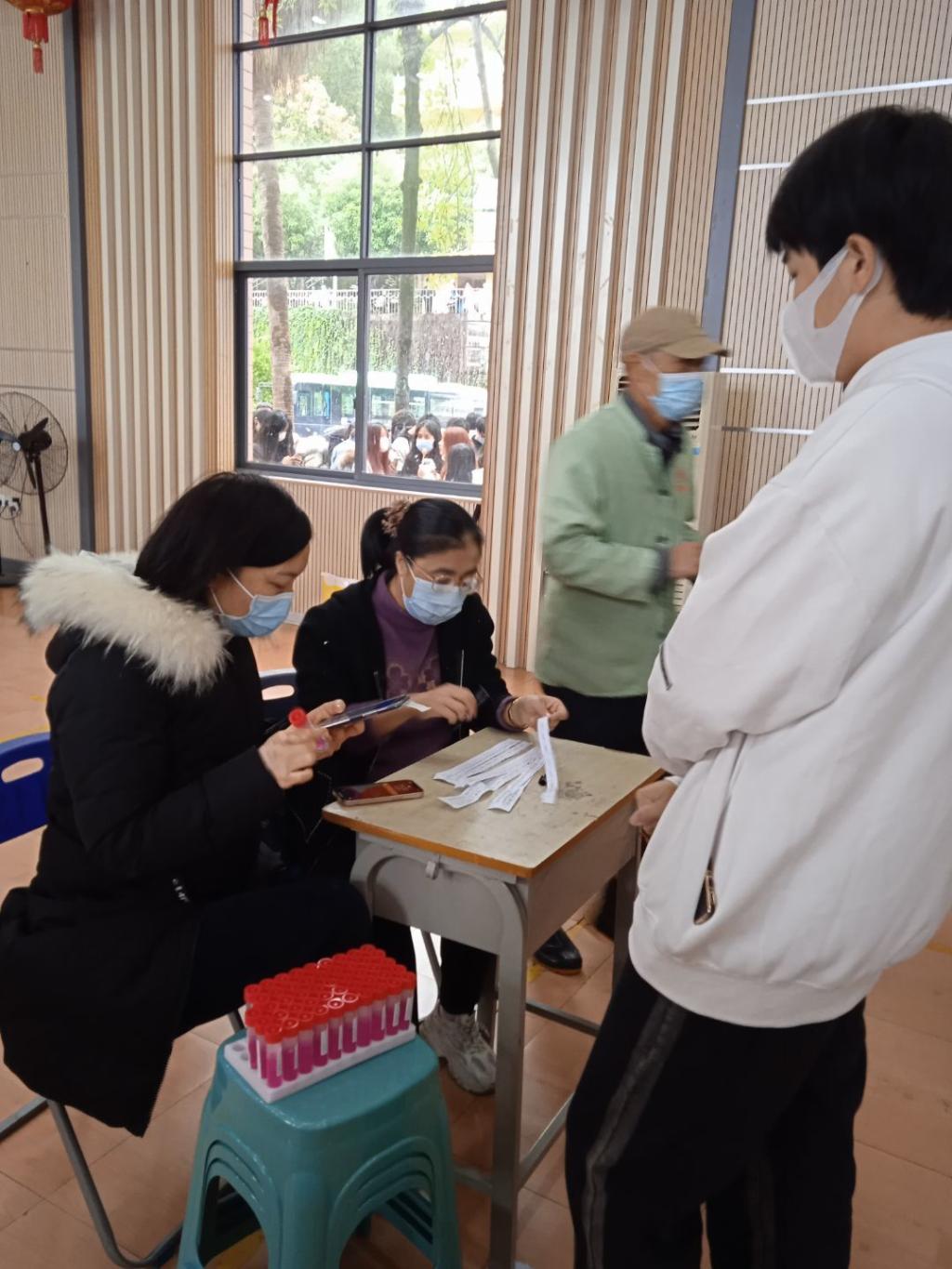 2022年12月3日下午,我院天麟校区组织全校师生进行核酸检测,经济管理系教师党员不畏严寒,积极奋战在核酸检测的各个工作岗位,充分发挥党员的先锋模范带头作用,为校园防疫筑牢防线。